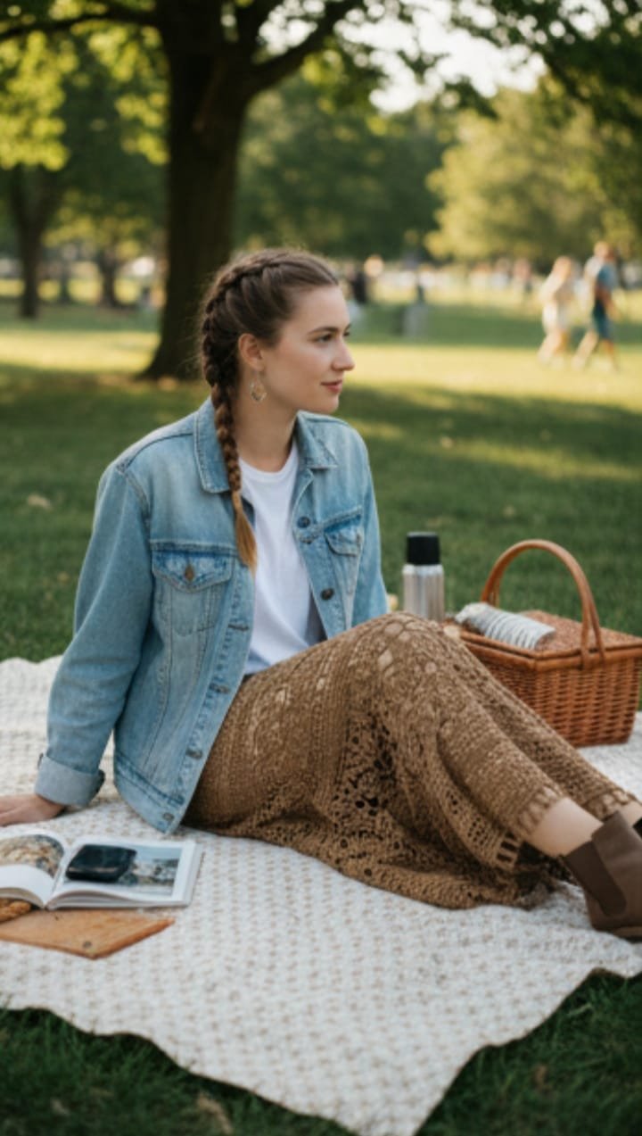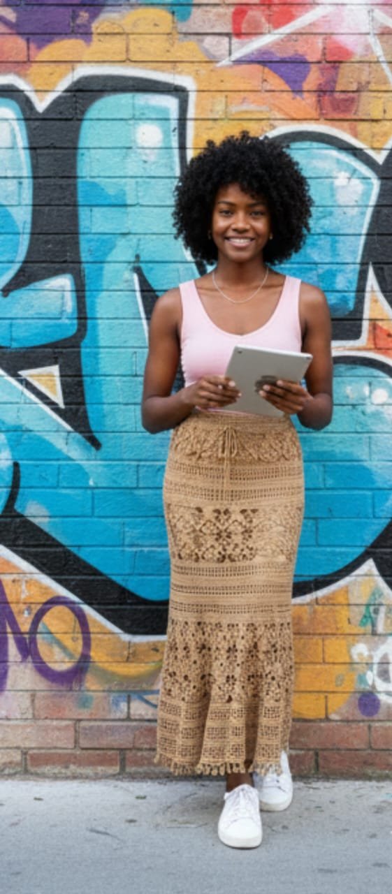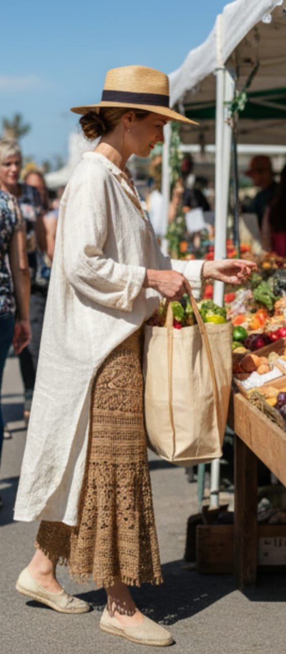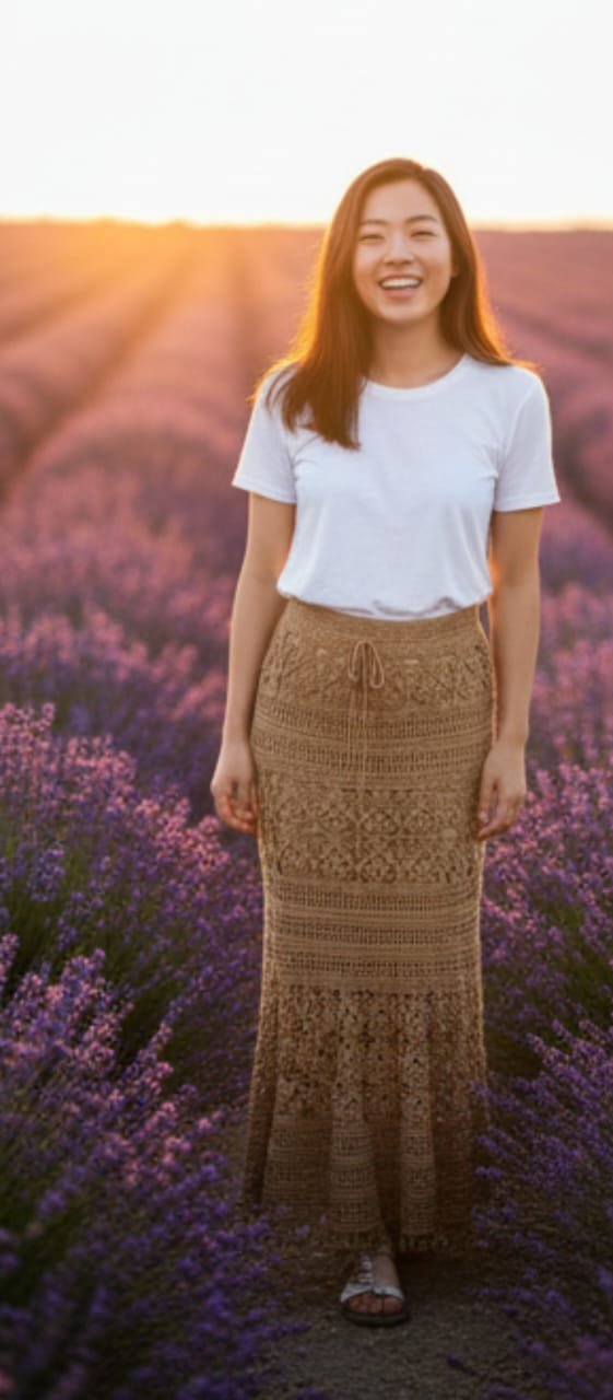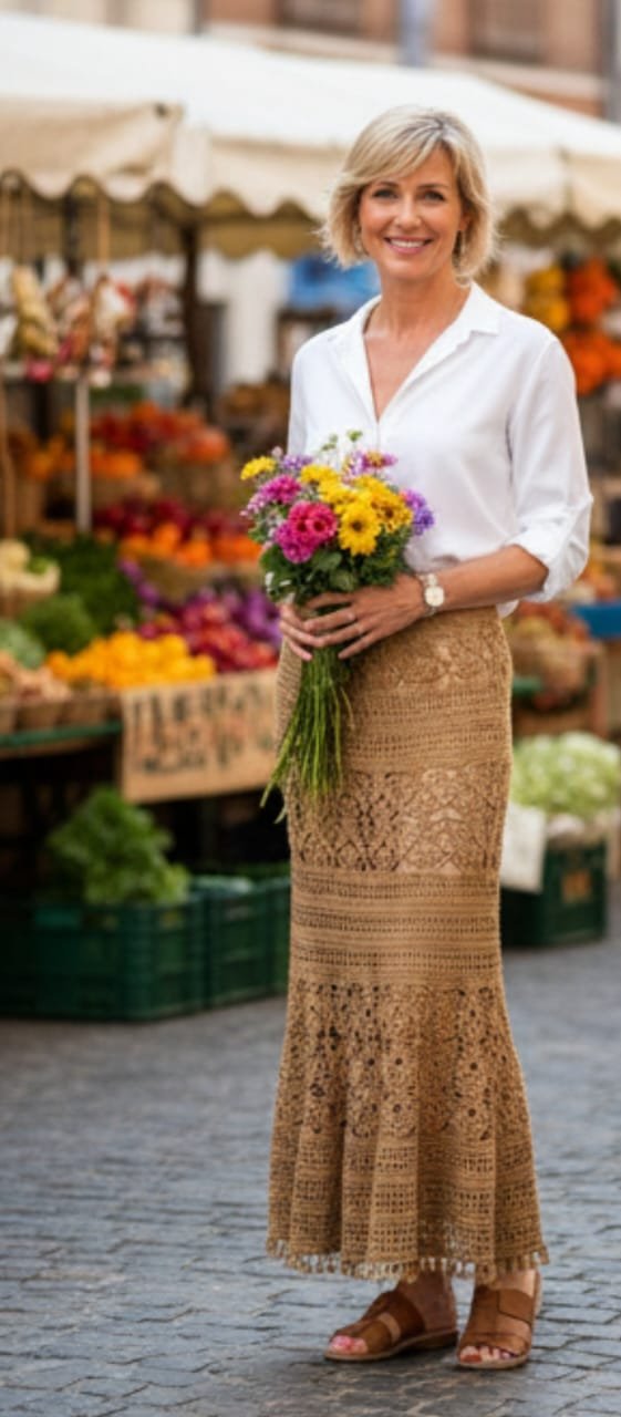 🌾Una falda fluida, natural y artesanal que realza cada movimiento.